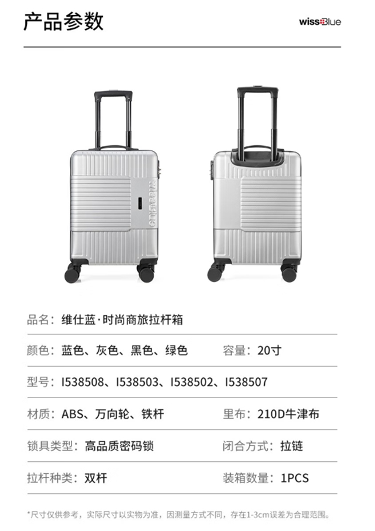 维仕蓝 时尚商旅拉杆箱 黑色 20寸 I538502